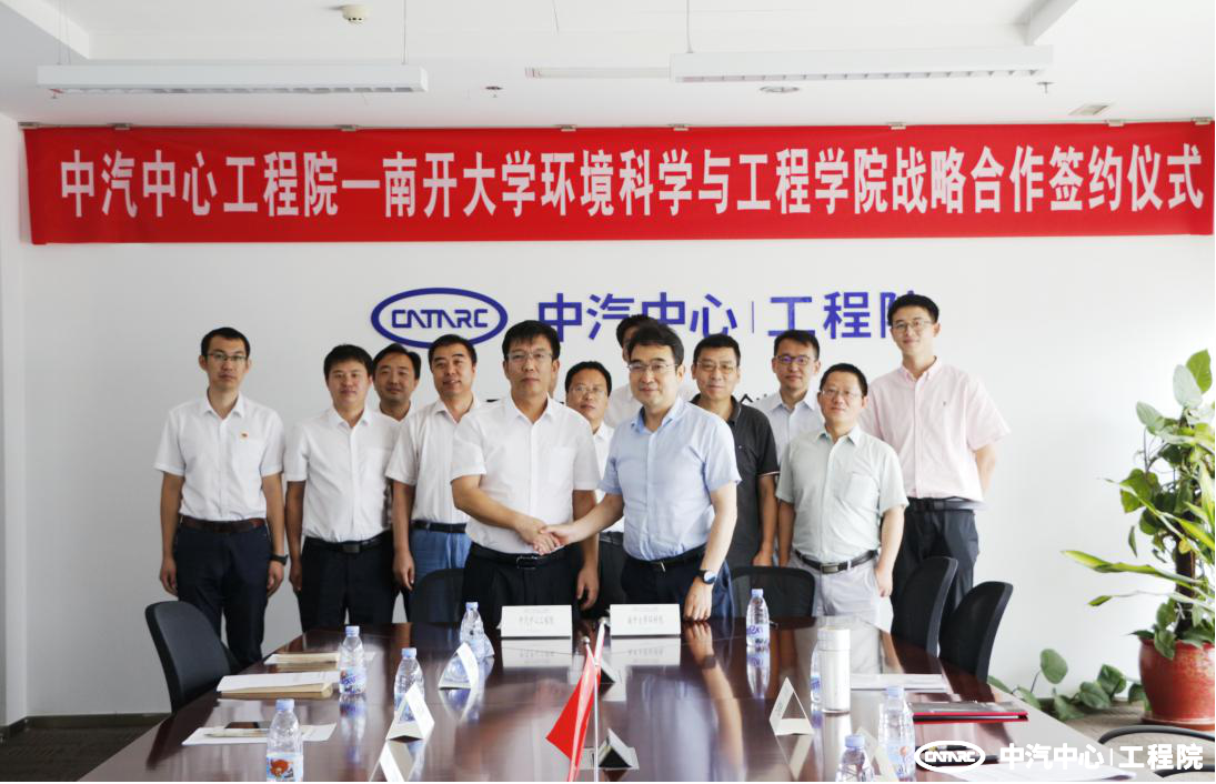 2021年7月16日,南開(kāi)大學(xué)環(huán)境科學(xué)與工程學(xué)院副院長(cháng)馮銀廠(chǎng),天津市城市交通污染防治研究重點(diǎn)實(shí)驗室主任毛洪鈞一行至中汽研(天津)汽車(chē)工程研究院有限公司(以下簡(jiǎn)稱(chēng)“中汽中心工程院”)走訪(fǎng)交流并簽署戰略合作協(xié)議。中汽中心工程院黨委書(shū)記、總經(jīng)理王建海,黨委委員、副總經(jīng)理、總工程師李洪亮,以及相關(guān)人員陪同交流并參加簽約儀式。簽約儀式由李洪亮主持。