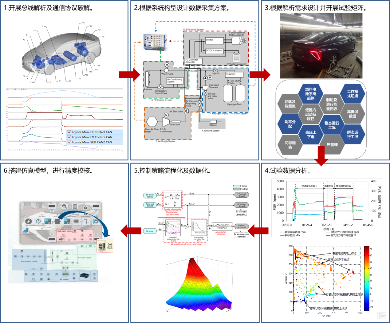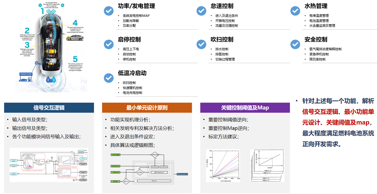 中汽中心工程院燃料電池團隊具備行業(yè)內最豐富的“燃料電池控制策略解析”技術(shù),可提供信號交互邏輯、最小功能單元設計方法、關(guān)鍵閾值及Map,最大程度滿(mǎn)足燃料電池汽車(chē)/系統正向開(kāi)發(fā)需求。