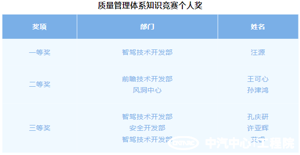 為進(jìn)一步提高全體員工的質(zhì)量意識,加強質(zhì)量管理,推動(dòng)中汽中心工程院產(chǎn)品和服務(wù)質(zhì)量持續提升,中汽中心工程院于2024年9月29日開(kāi)展了質(zhì)量管理體系知識競賽暨質(zhì)量月活動(dòng)總結會(huì )。