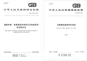 - GB 45672-2025《車(chē)載事故緊急呼叫系統》,作為強制標準,2025年4月25日發(fā)布,計劃于2027年7月1日實(shí)施,由中汽中心牽頭制定,規范了車(chē)載事故緊急呼叫系統的技術(shù)要求、試驗方法和同一型式判定要求,其中免提通話(huà)性能要求應滿(mǎn)足GB/T 45314-2025《道路車(chē)輛免提通話(huà)和語(yǔ)音交互性能要求及試驗方法》中的要求。